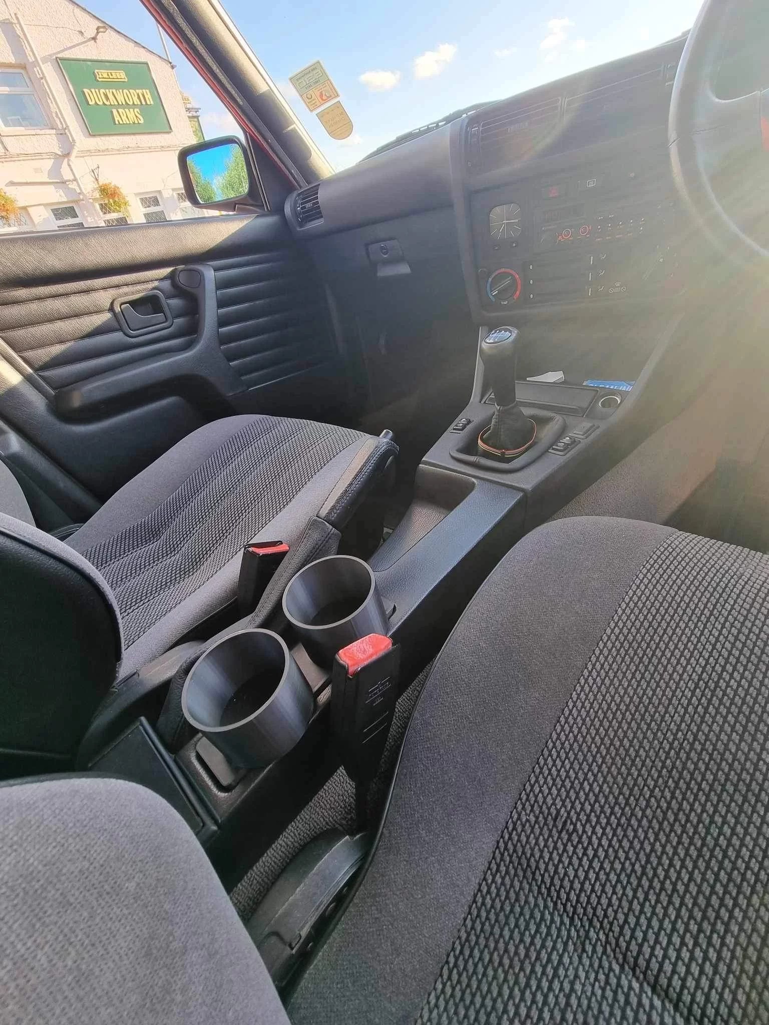 Precision Fit: Engineered specifically for the BMW E30, this dual cup holder slots seamlessly into the coin tray area beside the handbrake. No rattles, no movement—just a snug, factory-like fit.